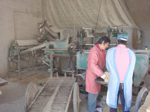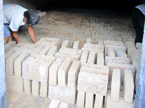 原料筛选→润料2小时→粉碎→加水搅拌→压成型→入房3天起火,7天潮火,7天大火,七天后火。→拼房实跺,5天→成品化验入库→3个月后化验出厂。